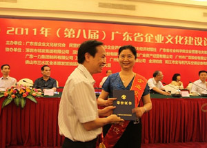 集團(tuán)位列“2010年度廣東省企業(yè)文化建設(shè)十佳單位”首位,劉愛群、林嬋波分獲“2010年度廣東省企業(yè)文化建設(shè)十佳先進(jìn)個人、企業(yè)文化管理先進(jìn)個人”稱號